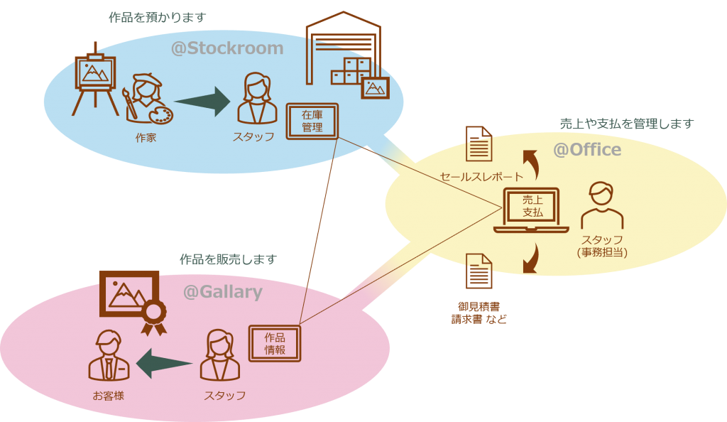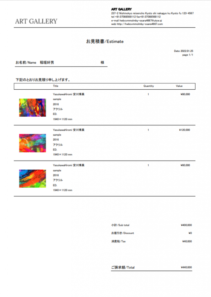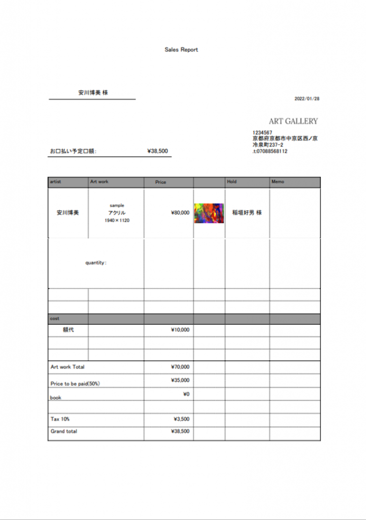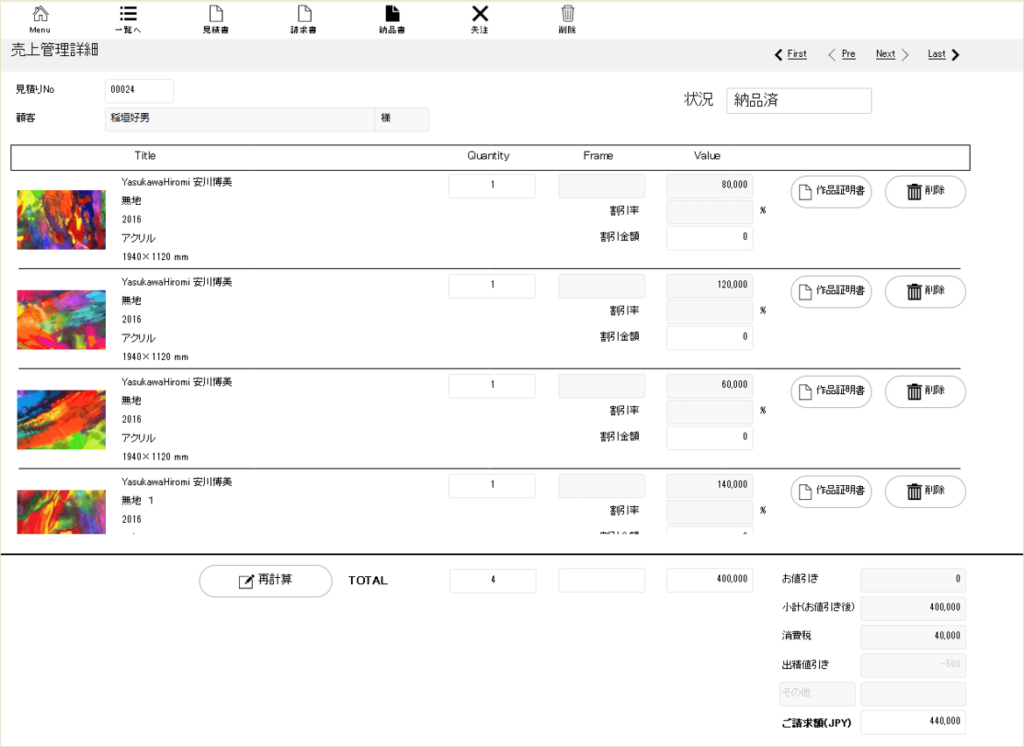 顧客の購入履歴や作家に支払うための情報もシステム内で確認でき、見積書や請求書が簡単に発行できるようになりました。