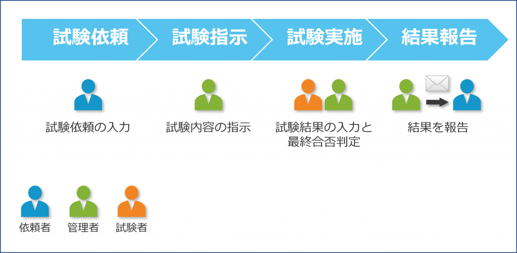 - 管理者が依頼された試験を試験者に割り振る
